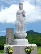 御霊観音(みたまかんのん)は「散骨プラン又は埋葬プランを選択できる、永代供養付き樹木葬」の供養です。遺骨は粉骨し、散骨か埋葬がえらべます。その後、当院の敷地内にある観音菩薩像前に物故者を散骨か埋葬し、観音菩薩像に看取られながら沈丁花(じんちょうげ)・ゼラニウムの花と香りに包まれて自然に還り、新しい命として生まれ変わります。