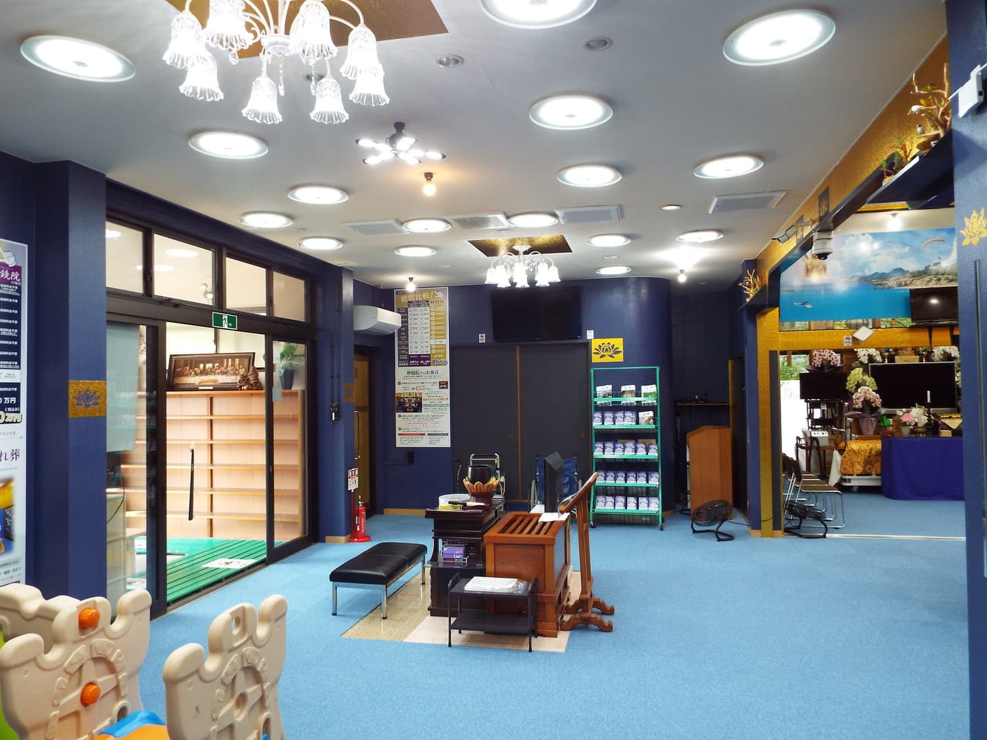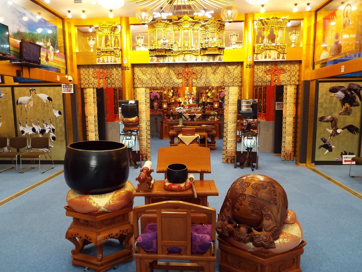 妙鏡院は段差がないバリアフリー設計の本堂で天井にはシャンデリア電気・他のLED電気で明るく照らし、世界遺産の城や国宝となっているお寺のように金屛風の襖に動物の写真を貼って参拝される方々から好評を得られています。また、生花の胡蝶蘭そっくりな造花を本堂に飾っていますので故人様を敬いご遺族に寄り添い、充実したサポートで心のこもったご供養ができると信じています。